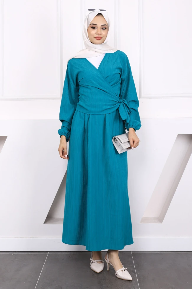 Siyah Yan Bağlamalı Bürümcük Bluz Etekli Takım Yağ Yeşili Yan Bağlamalı  Bluz Etekli Takım Mor Yan Bağlamalı Bluz Etekli Takım Bej Yan Bağlamalı  Bluz Etekli Takım