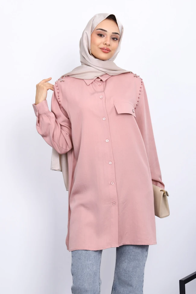 Haki Omuzları İncili Tunik İndigo Omuzları İncili Tunik Bordo Omuzları İncili Tunik Camel Omuzları İncili Tunik Bej Omuzları İncili Tunik