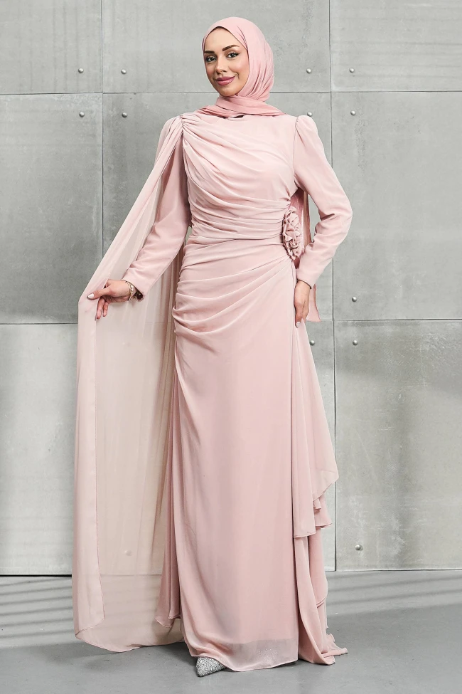 Siyah Pelerinli Gül Detaylı Şifon Abiye Mint Yeşili Pelerinli Gül Detaylı Şifon Abiye Haki Pelerinli Gül Detaylı Şifon Abiye