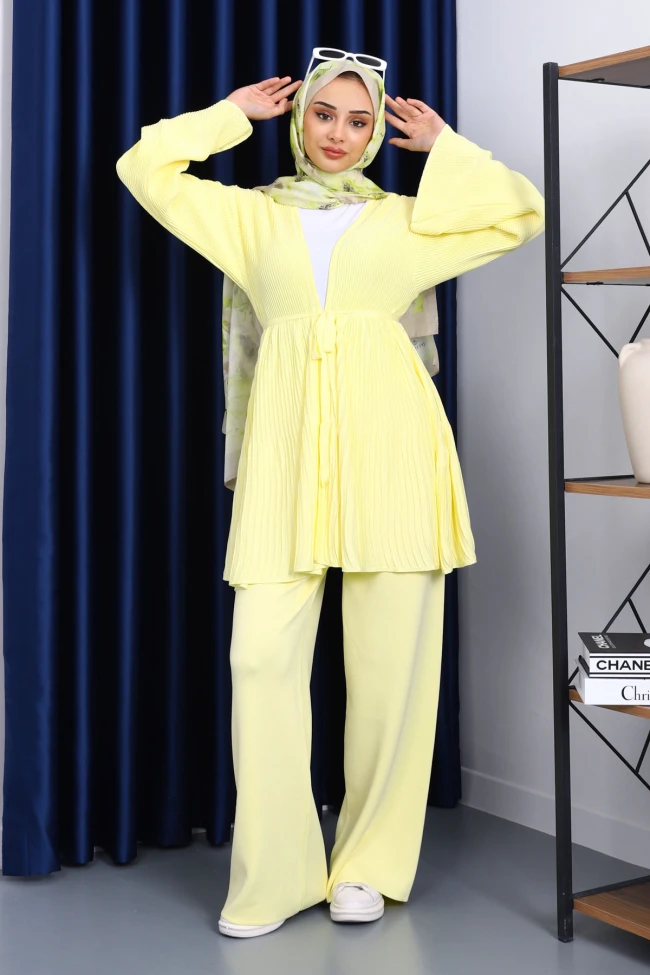 * Ürün Detay : Ürünümüz Scuba Kumaştan Üretilmiştir. Hırka ile Pantolon ikili takım şeklindedir. Hırka bel bağlamalı dır. Pantolon bel kısmı lastiklidir.