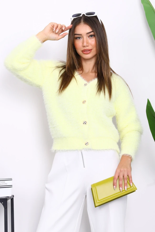 * Ürün Detay :  Ürünümüz Angora Yumoş Triko kumaştan üretilmiştir. Ön kısmı düğme detaylıdır.