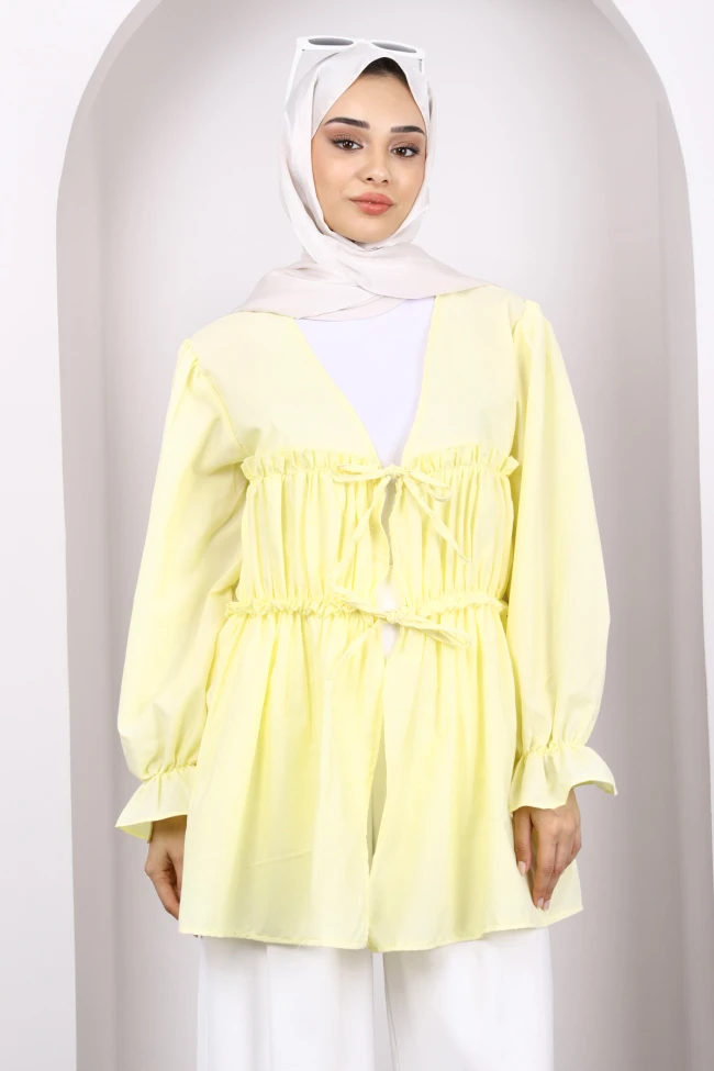 * Ürün Detay : Ürünümüz Terikoton kumaştan üretilmiştir. Ön kısmı bağlama detaylıdır.