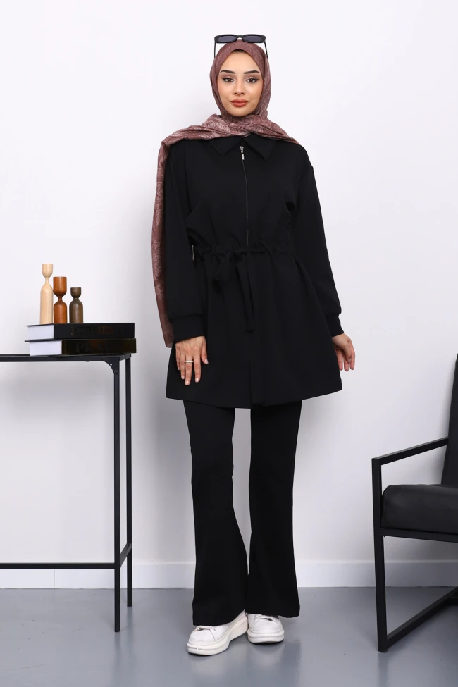 * Ürün Detay : Ürünümüz Modal Kumaştan Üretilmiştir. Tunik ile Pantolon ikili takım şeklindedir. Tunik ön kısmı fermuarlıdır ve bel kısmı kulisan kemer detaylıdır. Pantolon bel kısmı lastiklidir.