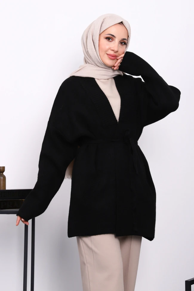 Kahverengi Bel Kuşaklı Cepli Triko Hırka Lacivert Bel Kuşaklı Cepli Triko Hırka Ekru Bel Kuşaklı Cepli Triko Hırka