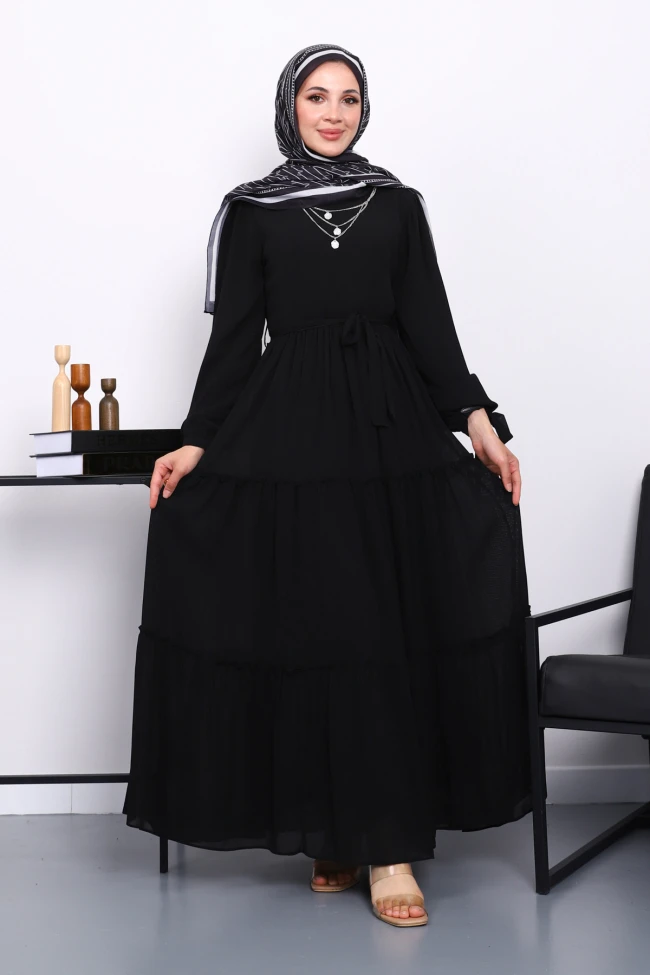 Camel Eteği Katlı Kol Bağlamalı Şifon Elbise Gül Kurusu Eteği Katlı Kol Bağlamalı Şifon Elbise Bisküvi Eteği Katlı Kol Bağlamalı Şifon Elbise