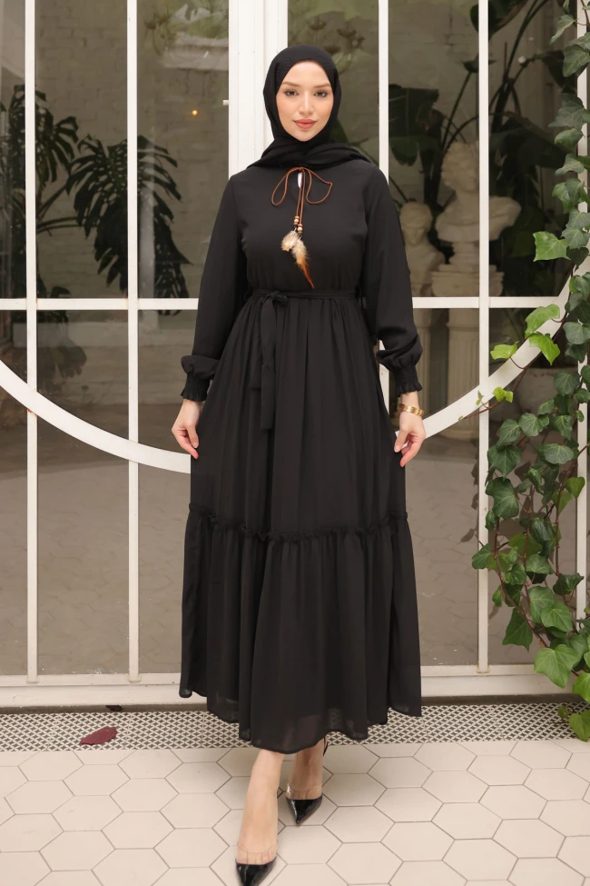 * Ürün Detay : Her tarza hitap eden elbisemiz günlük kullanılabileceği gibi özel günlerdede kullanılabilir. Yeni sezona uygun şifon kumaştan üretilmiş olan ürünümüz boyun bağcık detayı ile hareketlendirilmiştir. Renk seçenekleri mevcuttur. Eteği katlıdır. Fermuarlıdır.Beli kuşaklıdır. Kol manşetleri lastiklidir. Uygun fiyatıylada dikkat çekmektedir.