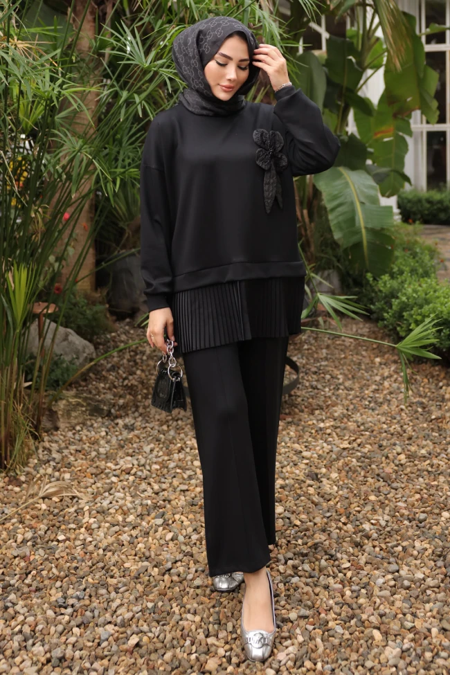 * Ürün Detay : Zarif bir görünüme sahip olan takımımız sade şıklığı tarz haline getiren hanımlar sizler için geldi. Yeni sezona uygun modal kumaştan üretilmiştir. Tunik ve pantolon olarak ikili takımdır. Pantolon ceplidir. Tunik etek ucu pile detayı ile hareketlendirilmiştir.