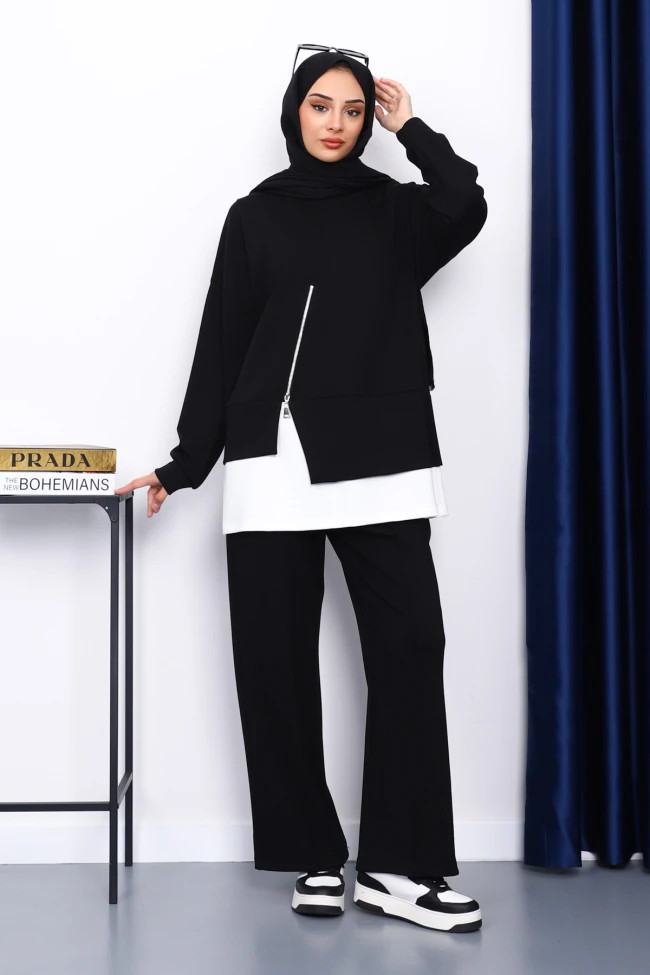 Haki Fermuar Detaylı Modal Tunik Pantolonlu Takım Koyuv Vizon Fermuar Detaylı Modal Tunik Pantolonlu Takım Lacivert Fermuar Detaylı Modal Tunik Pantolonlu Takım Buz Mavi Fermuar Detaylı Modal Tunik Pantolonlu Takım