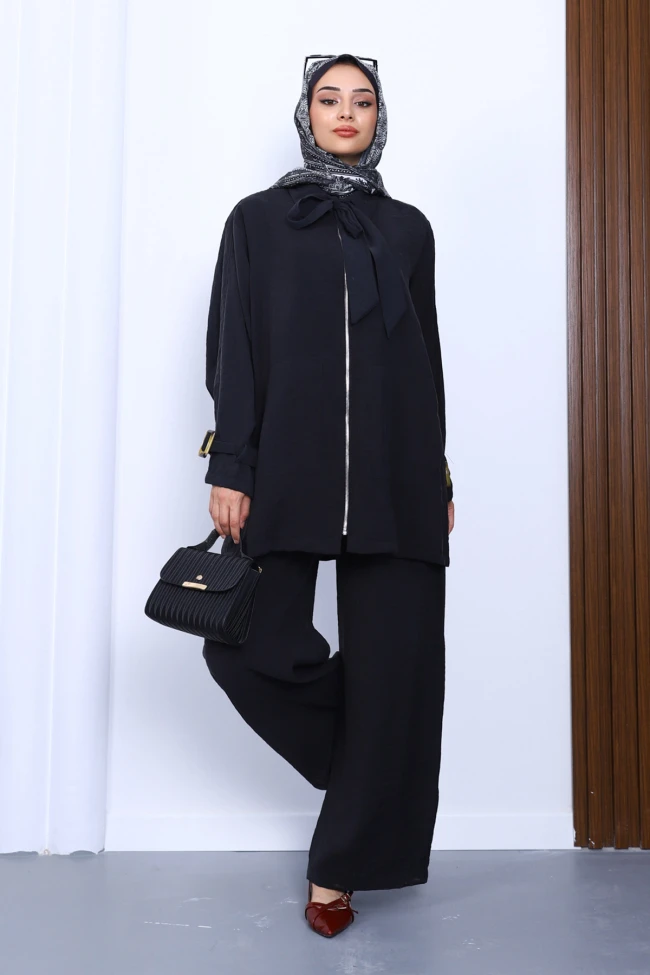 * Ürün Detay :  Yeni sezona uygun Modal kumaştan üretilmiştir. Tunik ön kısmı fermuarlı olup, yaka kısmı bağlamalıdır. Pantolon bel kısmı lastiklidir.
