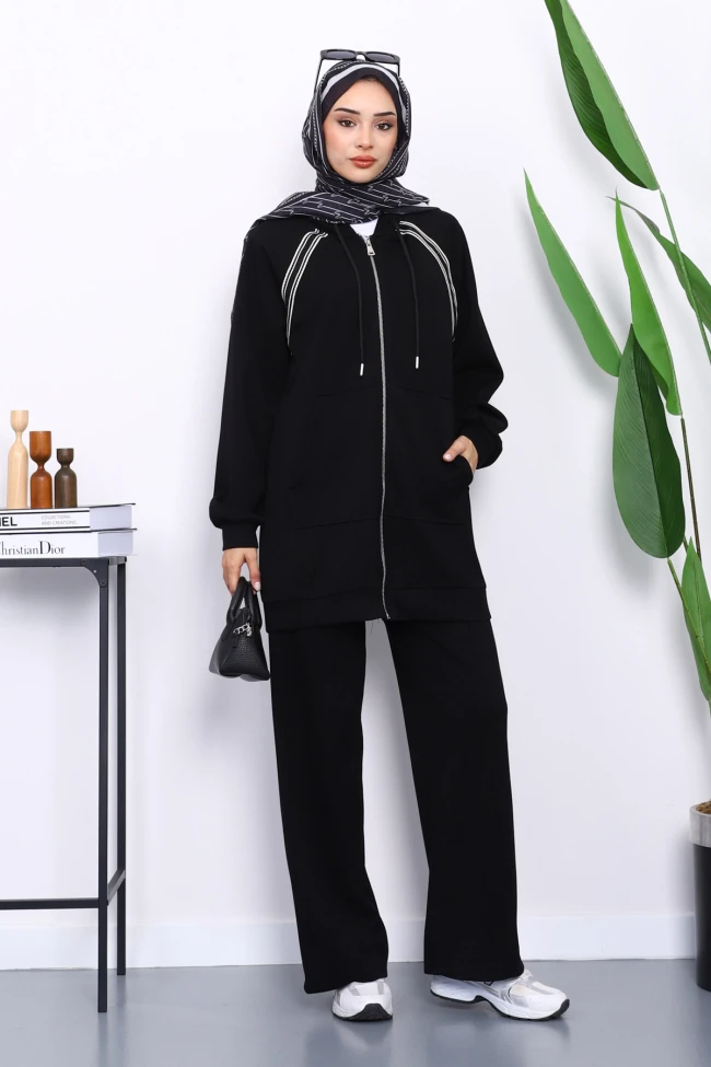 * Ürün Detay : Ürünümüz Modal Kumaştan Üretilmiştir. Tunik ile Pantolon ikili takım şeklindedir. Tunik ön kısmı fermuarlı ve kapüşonlu olarak tasarlanmıştır. Pantolon bel kısmı lastiklidir.
