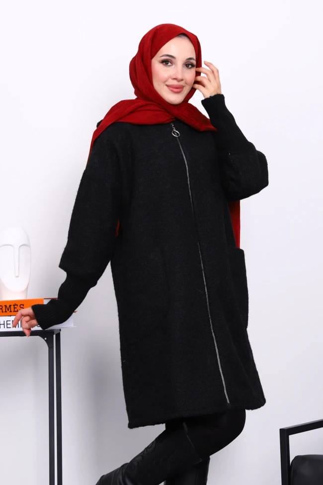 Lacivert Fermuarlı Yün Kaşe Kaban Vizon Fermuarlı Yün Kaşe Kaban Bordo Fermuarlı Yün Kaşe Kaban