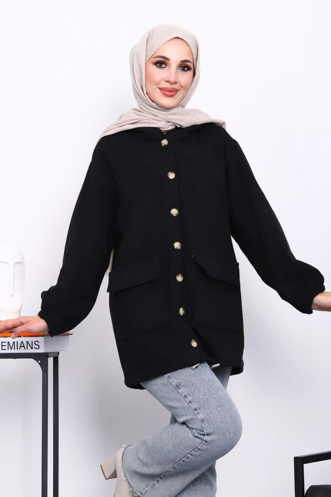 * Ürün Detay : Ürünümüz Kaşe kumaştan üretilmiştir. Ön kısmı düğmeli ve cep detayları yer almaktadır. Kapüşonlu olarak tasarlanmıştır.