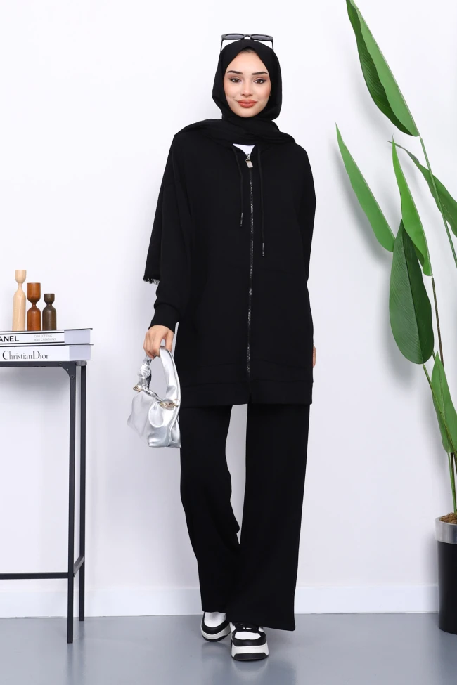 * Ürün Detay : Ürünümüz Modal Kumaştan Üretilmiştir. Tunik ile Pantolon ikili takım şeklindedir. Tunik ön kısmı fermuarlı ve kapüşonlu olarak tasarlanmıştır. Pantolon bel kısmı lastiklidir.