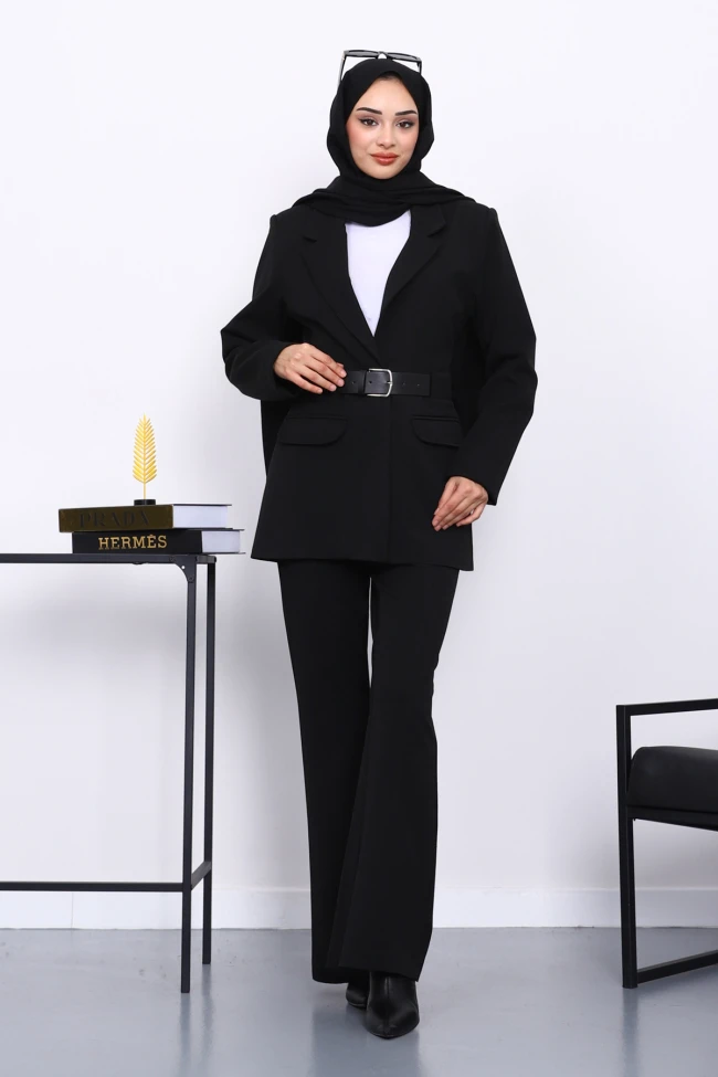 * Ürün Detay : Ürünümüz Krep kumaştan üretilmiştir. Ceket ile Pantolon ikili takım şeklindedir. Ceket bel kısmı kemerlidir. Pantolon bel kısmı lastiklidir.
