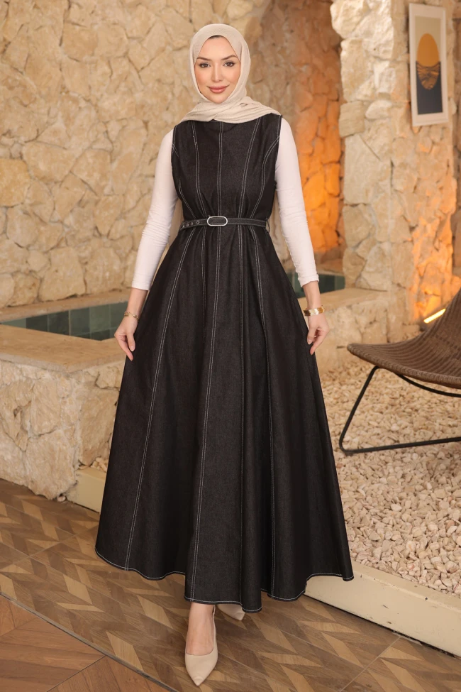 * Ürün Detay :Jile, "çabasız şıklık" tanımına tam uyuyor. Hem günlük hayatta hem de şık bir akşam yemeğinde rahatlıkla tercih edilebilir.Jilenin boydan boya inen beyaz dikişleri, silüeti olduğundan daha uzun ve ince göstermek için harika bir illüzyon sağlıyor. Tasarıma modern ve hafif sportif bir hava katmış.Kendi kumaşından olan ince kemer, bel hattını belirginleştirerek jilenin geniş etek kesimini dengeliyor. Bu da vücut formunun kaybolmasını engelliyor.Geniş ve dökümlü etek kısmı, harekete özgürlük tanırken aynı zamanda oldukça zarif bir duruş sergiliyor.