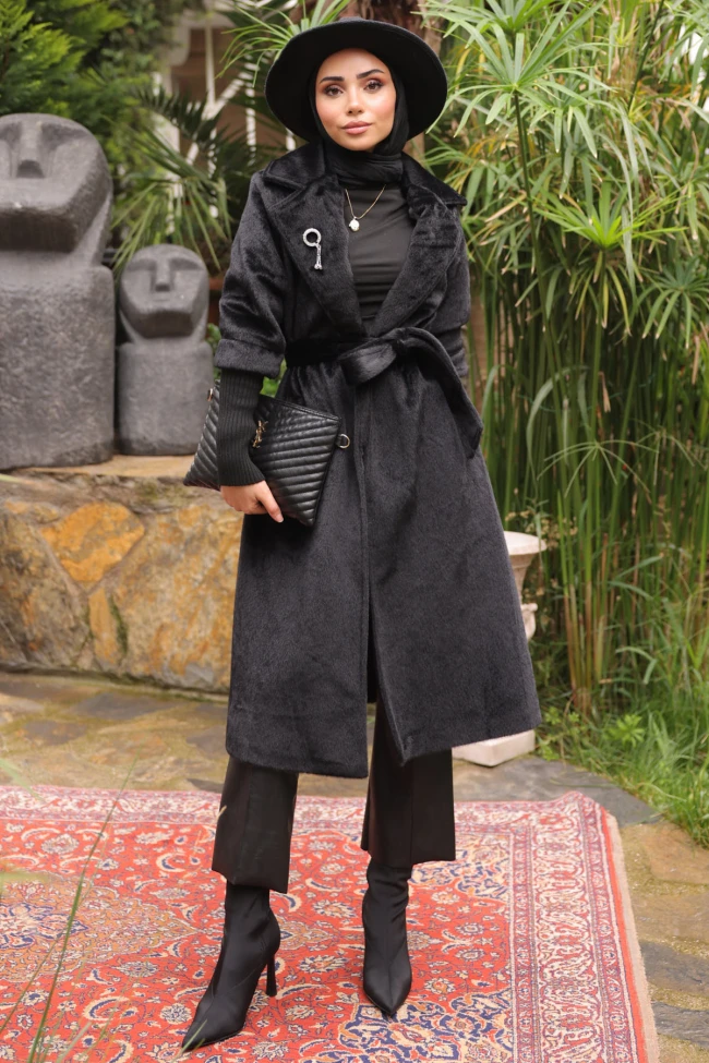 * Ürün Detay : Ürünümüz yeni sezona uygun Angora kumaştan üretilmiştir.  Bel kısmı kuşaklı olup, yan kısımları ceplidir. Yaka kısmı broş detaylıdır.