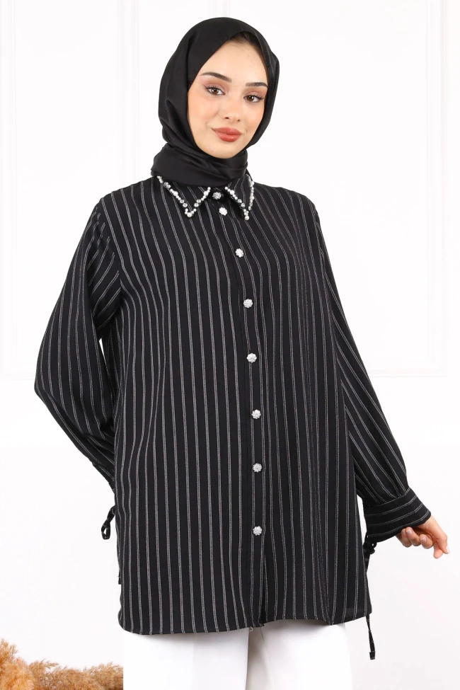 * Ürün Detay : Ürünümüz Linda Krep  kumaştan üretilmiştir. Ön kısmı düğmeli olup, yaka kısmı taşlıdır.