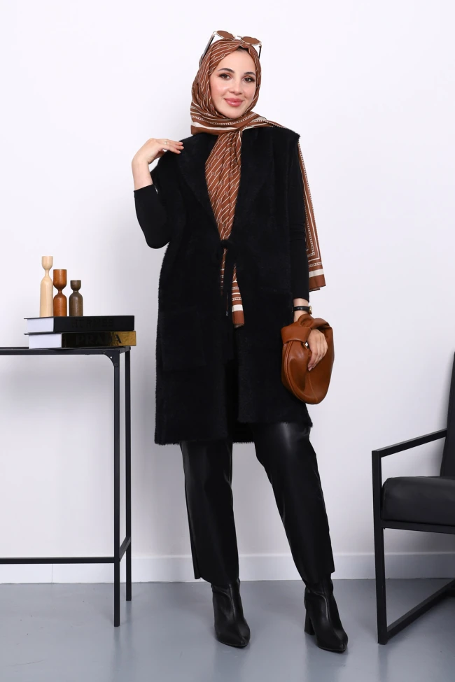 * Ürün Detay : Ürünümüz Angora Yumoş Kumaştan Üretilmiştir. Ön kısmı bağlama detaylı olup, cep kısımları yer almaktadır.
