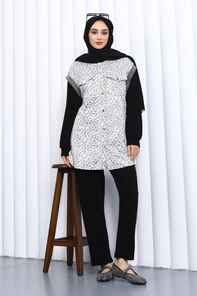 * Ürün Detay : Ürünümüz Modal  Kumaştan Üretilmiştir. Yelek, Tunik ve Pantolon 3'lü takım şeklindedir. Yelek ön kısmı çıt çıtlı ve ceplidir. Pantolon bel lastiklidir.