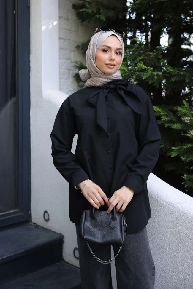 * Ürün Detay : Gömlek, özellikle bahar ve yaz ayları için hem şık hem de oldukça konforlu bir parça.Yakadaki fular detayı, klasik düğmeli gömlek havasından çıkarıp tasarıma retro ve feminen bir hava katmış. Bu detay, kolye kullanımına gerek bırakmadan göğüs bölgesine hareket kazandırıyor.Kumaşla aynı renk düğmelerin tercih edilmesi, bütünlüğü bozmayan dokunuş olmuş.Vücut hatlarını belli etmeyen, dökümlü ve uzun bir kesime sahip. Bu da gömleği özellikle tesettür giyim veya rahatlığına düşkün olanlar için ideal kılıyor.Manşetlerin sade tutulması, gömleğin genelindeki minimal şıklığı destekliyor.