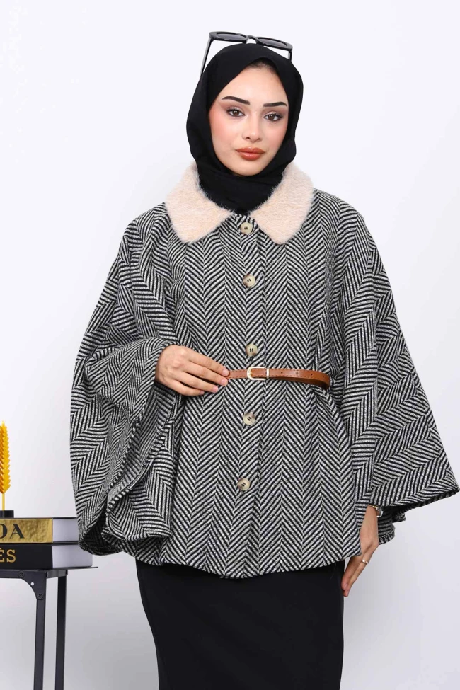 Vizon Yaka Kürklü Kemerli Panço İndigo Yaka Kürklü Kemerli Panço Pembe Yaka Kürklü Kemerli Panço Bordo Yaka Kürklü Kemerli Panço