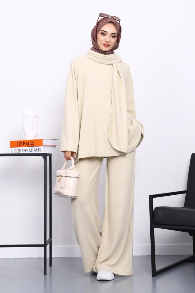 * Ürün Detay : Ürünümüz Fitilli Örme Triko Kumaştan Üretilmiştir. Tunik ile Pantolon ikili takım şeklindedir. Atkı ürüne aittir. Pantolon bel kısmı lastiklidir.