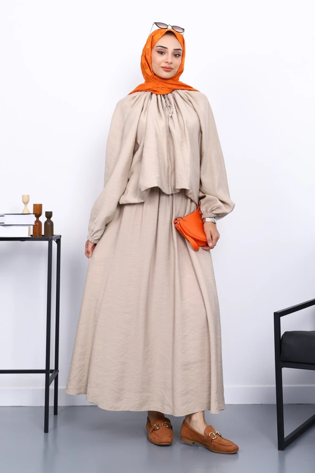 * Ürün Detay : Ürünümüz Modal kumaştan üretilmiştir. Ceket ile Etek ikili takım şeklindedir. Ceket ön kısmı fermuarlı ve yaka kısmı bağlama detaylıdır.