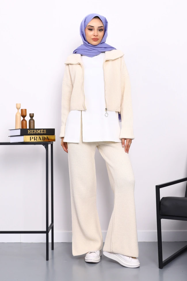 Lacivert Fermuarlı Üçlü Triko Takım Siyah Fermuarlı Üçlü Triko Takım Füme Fermuarlı Üçlü Triko Takım Kahverengi Fermuarlı Üçlü Triko Takım Bordo Fermuarlı Üçlü Triko Takım