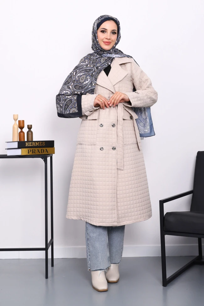 Lacivert Kapitone Kuşaklı Kaban Siyah Kapitone Kuşaklı Kaban Kahverengi Kapitone Kuşaklı Kaban