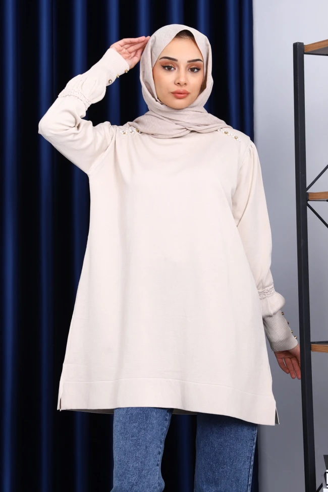* Ürün Detay : Ürünümüz yeni sezona uygun Merserize Soğuk İplik Triko kumaştan üretilmiştir. Dik yakadır. Omuz kısımlarında boncuk işlemeler yer almaktadır.