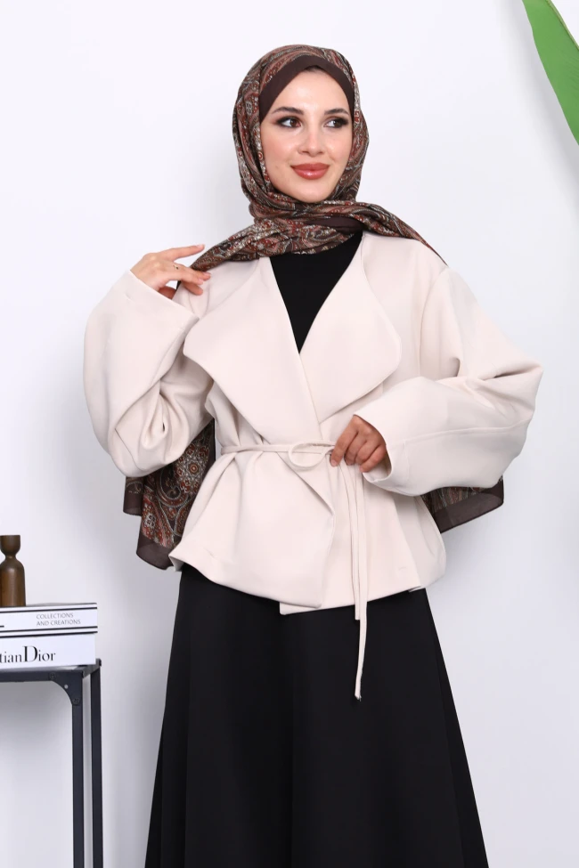 * Ürün Detay : Ürünümüz Scuba Puf kumaştan üretilmiştir. Bel kısmı kuşak detaylıdır.