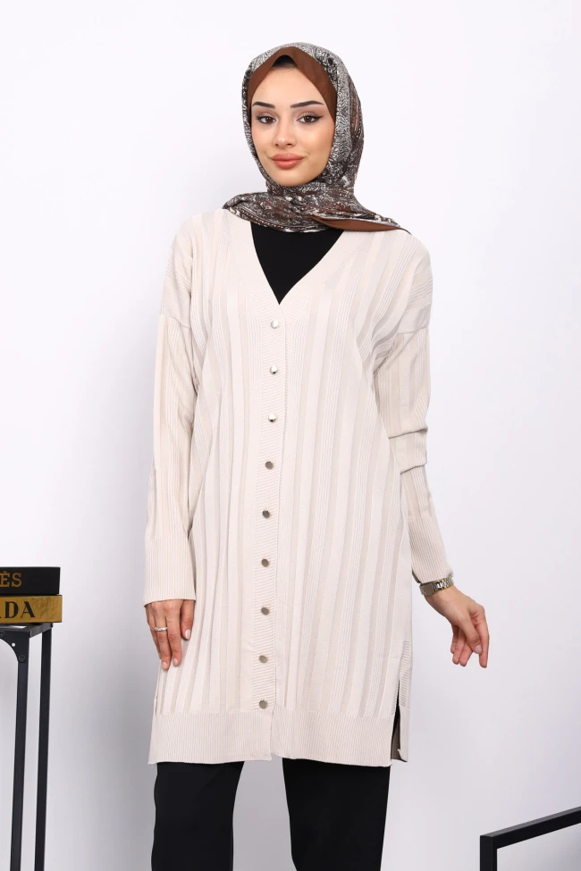* Ürün Detay : Ürünümüz yeni sezona uygun Merserize Soğuk İplik Triko  kumaştan üretilmiştir. Ön kısmı düğmelidir.