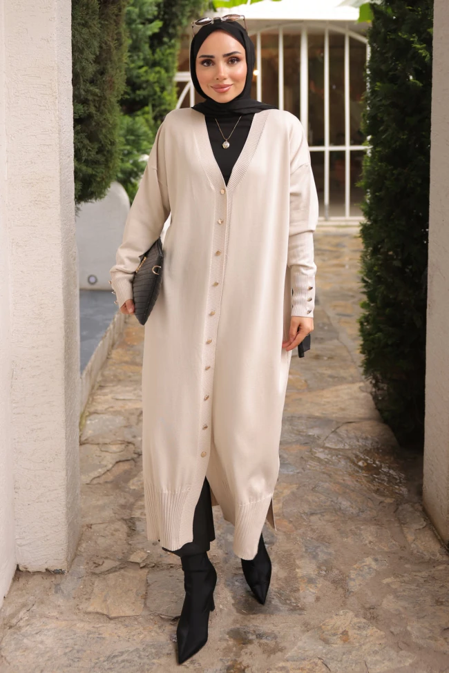 * Ürün Detay : Ürünümüz yeni sezona uygun Merserize Soğuk İplik Triko kumaştan üretilmiştir.  Modelimizin ön kısmı düğme detaylıdır.