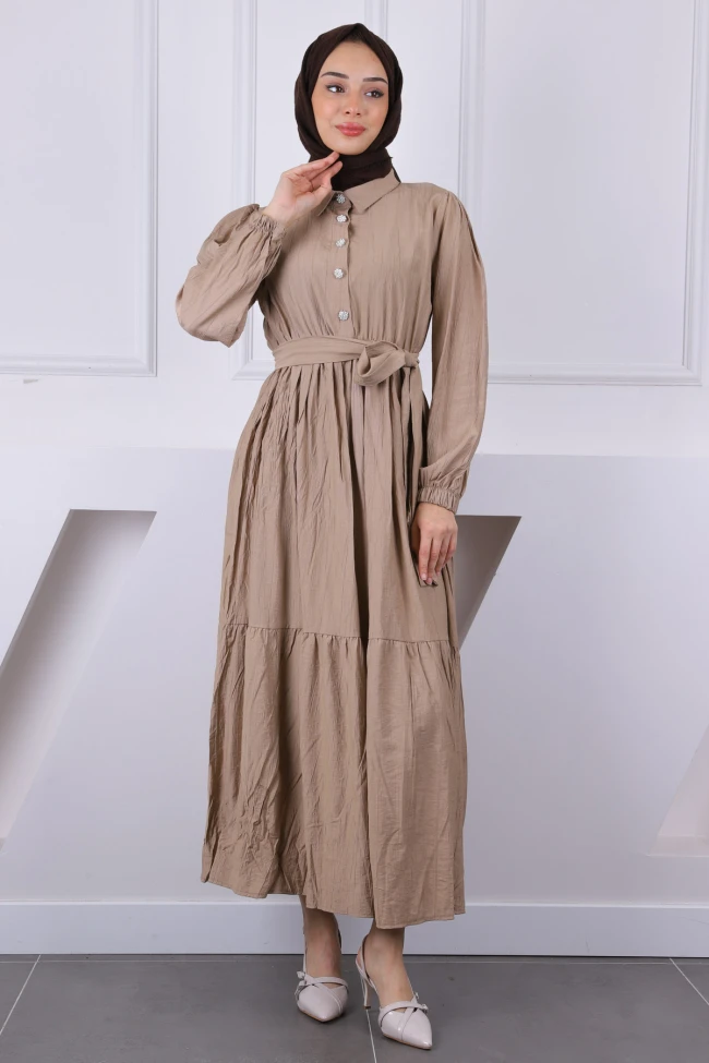 * Ürün Detay : Ürünümüz Modal Kumaştan Üretilmiştir. Ön kısmı düğmeli olup bel kısmı kuşak detaylıdır.