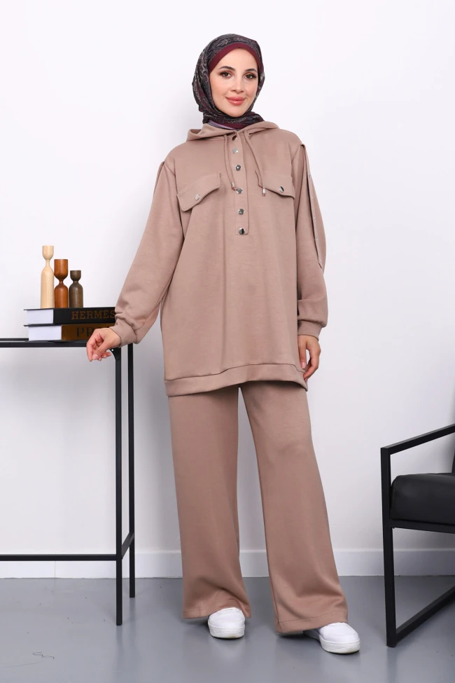 * Ürün Detay : Ürünümüz Premium Modal Kumaştan Üretilmiştir. Tunik ile Pantolon ikili takım şeklindedir. Yaka kısmı düğme detaylı olup, kapüşonlu olarak tasarlanmıştır.