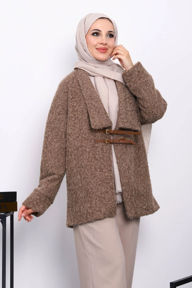 * Ürün Detay : Ürünümüz Kaşe Kumaştan Üretilmiştir. Göğüs kısmında kemer aksesuarları yer almaktadır.