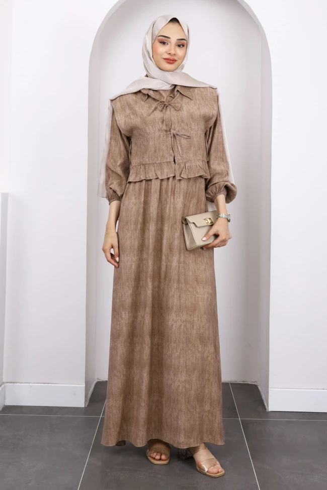 * Ürün Detay : Ürünümüz Keten Kumaştan Üretilmiştir. Yelek ile Elbise ikili takım şeklindedir. Yelek ön kısmı bağlamalıdır.