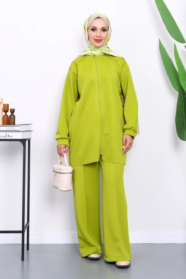 * Ürün Detay : Ürünümüz Pamuklu Scuba Puf kumaştan üretilmiştir. Tunik ile Pantolon ikili takım şeklindedir. Tunik ön kısmı fermuarlıdır. Pantolon bel kısmı lastiklidir.