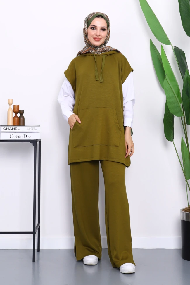 * Ürün Detay : Ürünümüz Modal Kumaştan Üretilmiştir. Tunik ile Pantolon ikili takım şeklindedir. Pantolon bel kısmı lastiklidir. Tunik kapüşonlu olup, ön kısmı cep detaylıdır.