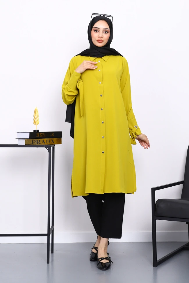 * Ürün Detay : Yeni sezona uygun Krep kumaştan üretilmiştir. Ön kısmı düğmeli ve kol kısmı bağlamalıdır.