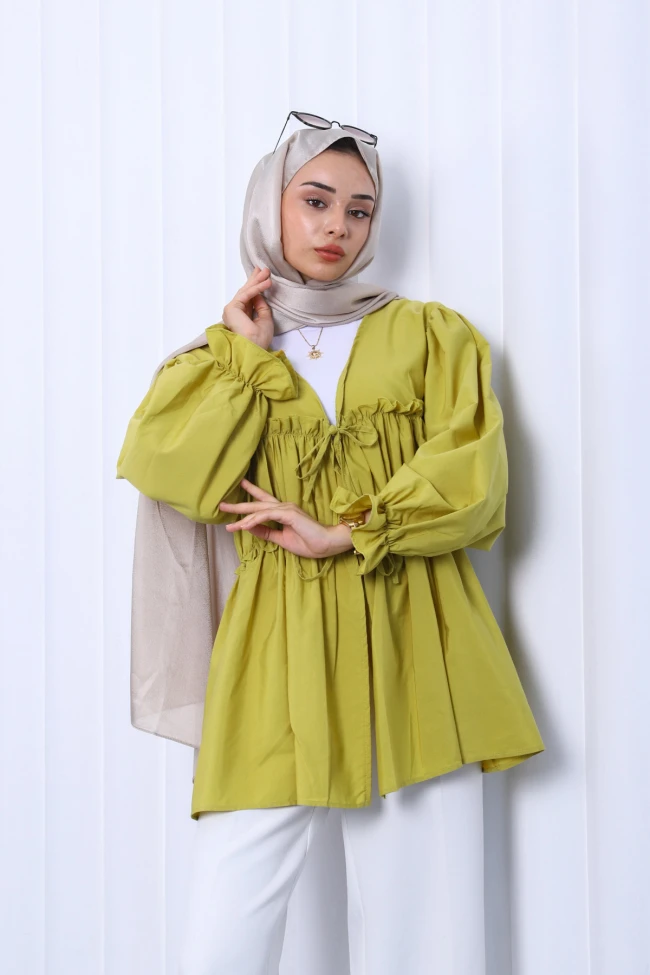 * Ürün Detay : Ürünümüz Terikoton kumaştan üretilmiştir. Ön kısmı bağlama detaylıdır.