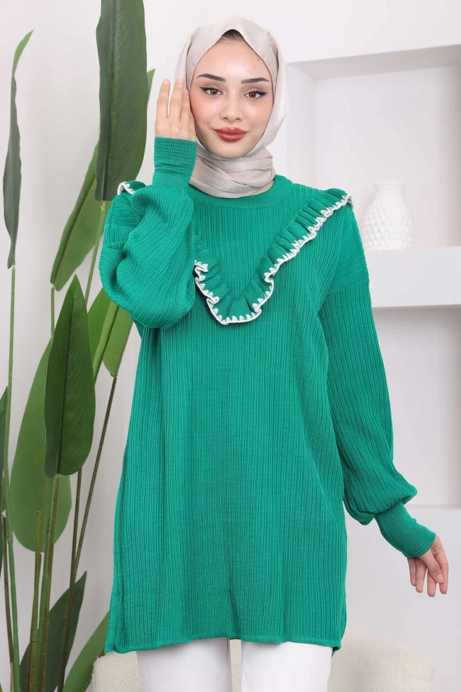 * Ürün Detay : Ürünümüz yeni sezona uygun Fitilli Triko kumaştan üretilmiştir. Bisiklet yakadır. Ön kısmında fırfır detayı yer almaktadır.