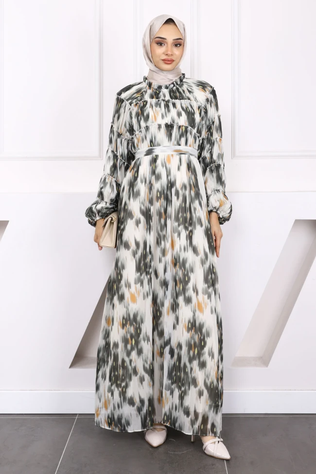 * Ürün Detay : Ürünümüz Şifon Kumaştan Üretilmiştir. Bel kısmı kuşaklıdır.